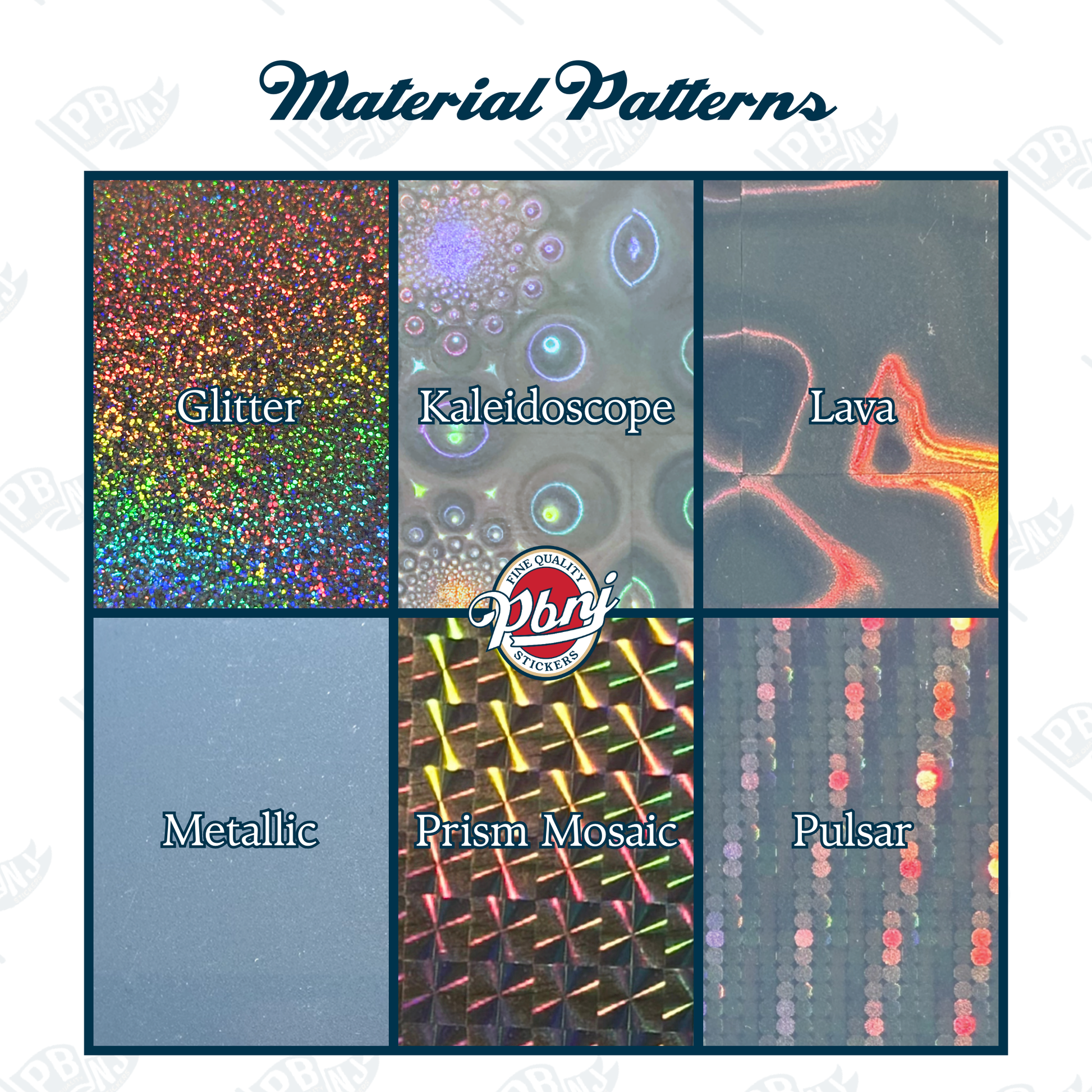 Click to view our extensive holographic pattern catalog. Multiple color and pattern combinations available as special orders.